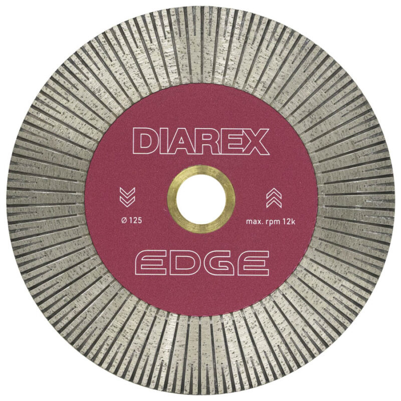 The Diarex Edge Specialised Turbo Blade is a premium quality blade for cutting and mitring of hard and thick porcelain, granite, marble, sintered stone and ceramic tiles. With a maximum cutting depth of 25mm, the Diarex Edge blade offers produces exceptional results across the hardest of materials. Includes a 15.85mm reducer.