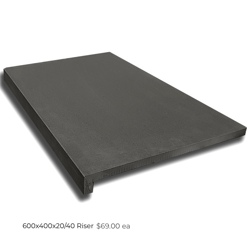 Quartz Porcelain paver range has the earthy look of real stone slabs in three natural greys with slip resistant textured finish for stairs and pools with matching drop down copers.