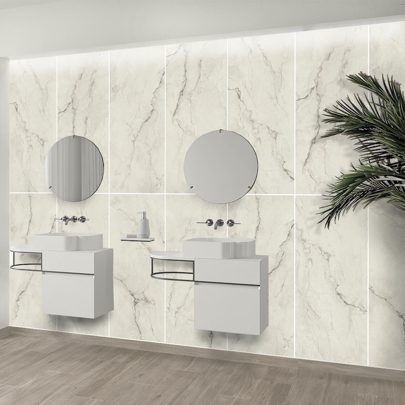 Umbra, our exquisite line of marble-look porcelain tiles. Crafted with a satin finish, these tiles exude an air of timeless elegance that will transform any floor or wall.